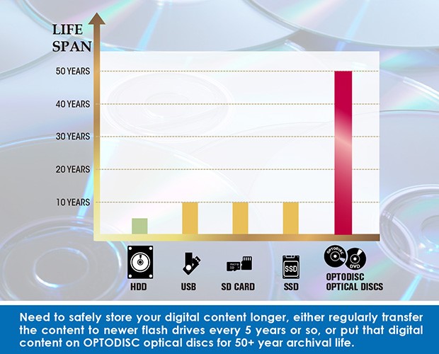 The best solution for your storage crunch are offloading cold data to optical discs. Optical discs have a long archival life, are easy to retrieve the content, and take up very little physical space, so they can easily be stored virtually anywhere. You may not listen to music on CD’s anymore or watch movies on DVD’s or Blu-ray either, but optical discs are still ideal for storage!
